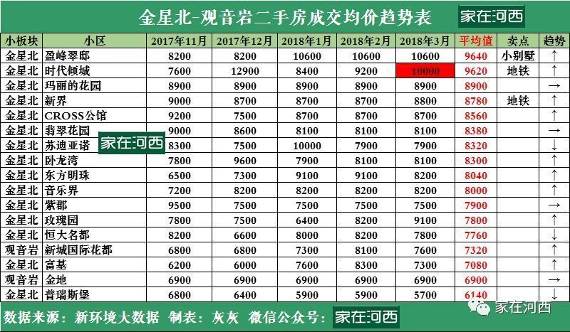 由于金星北沒(méi)有鏈家(以前翡翠花園門(mén)口有一家,后來(lái)撤了),所以看不到具體樓盤(pán)實(shí)際成交數(shù)據(jù),只有新環(huán)境上有各小區(qū)每個(gè)月的成交均價(jià)數(shù)據(jù),且最新的數(shù)據(jù)是2018年3月份,比如下面這個(gè)↓
