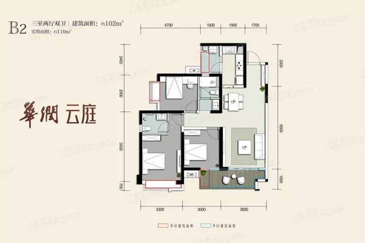 經(jīng)典戶型,幾乎挑不出毛病,102㎡做到三室兩廳雙衛(wèi),動(dòng)靜分區(qū),動(dòng)線合理,9.3米采光面,大陽(yáng)臺(tái)。缺點(diǎn):餐廳局促