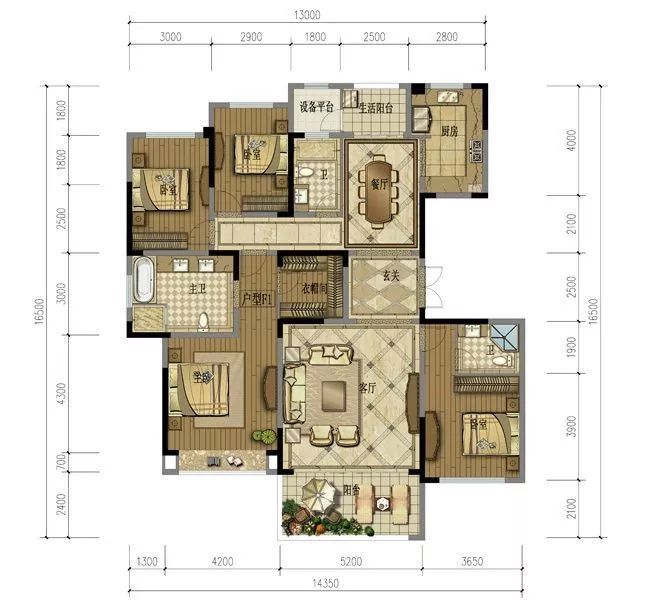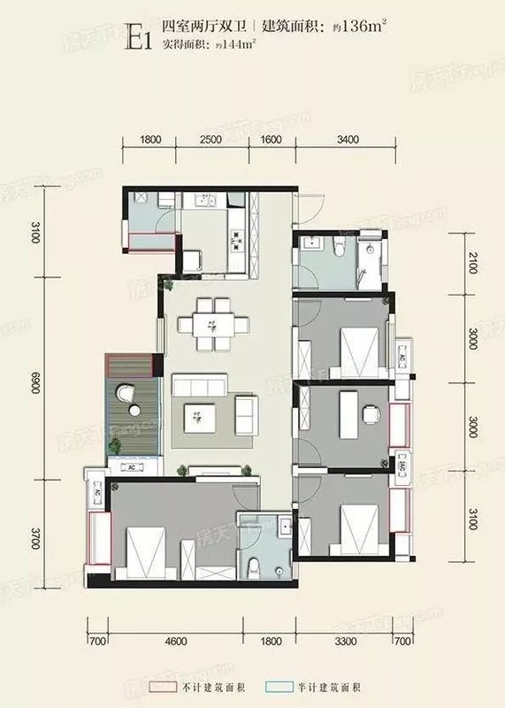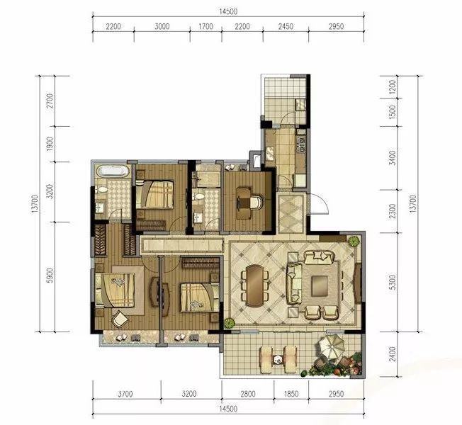 戶型沒(méi)毛病,南北通透,橫廳布局,采光面寬13.7米,沒(méi)有浪費(fèi)空間。缺點(diǎn):動(dòng)靜不分區(qū),也是橫廳布局的通病。