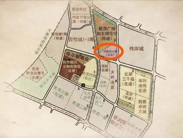 學(xué)校:缺乏優(yōu)質(zhì)公立學(xué)校,北大附小,北大成都附中均為私立學(xué)校,僅查到圖中規(guī)劃的公立小學(xué)。