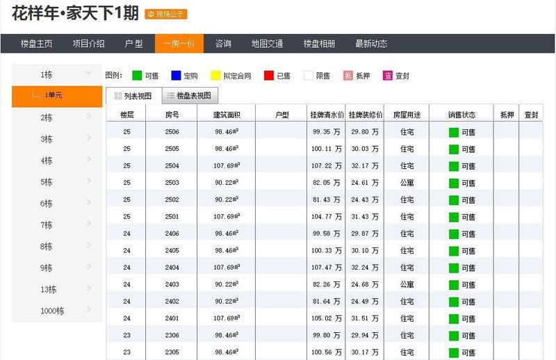 花樣年家天下本次推出4棟高層房源,分別是二期的1、4、8、9號(hào)樓,銷售房源767套,面積段在90-138㎡。精裝價(jià)格12800元/平米左右。