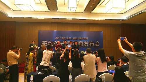 圖為:飛躍-樂途(集團)股份并購新聞發(fā)布會現(xiàn)場