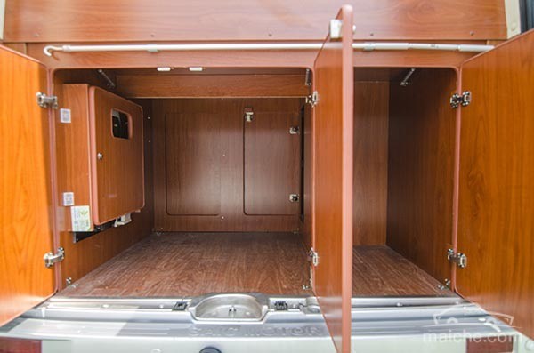 打開后尾門可以一覽臥室整體布局,床板下方還有超大儲(chǔ)物槽,可容納不少旅行用品。