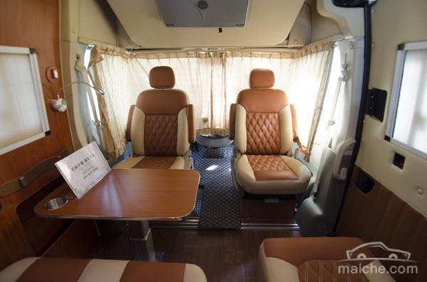 前排的主、副駕駛位座椅通過側(cè)面的拉手,可以180°向后旋轉(zhuǎn),從而更合理的利用了會(huì)客區(qū)的空間。這樣的設(shè)計(jì)非常適合喜歡打牌的朋友,您還可以在這里與親友共享人間美食。