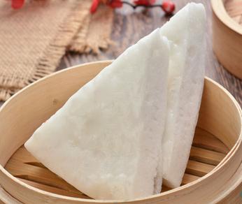 發(fā)糕算是米粑的“近親”了,經(jīng)過磨漿后發(fā)酵、散發(fā)出陣陣米酒清甜香氣的大米,放至蒸籠中蒸熟,再拿出切塊,口感比米粑更松軟。一塊塊如雪般潔白的發(fā)糕,在上面點綴些黑芝麻,中心加顆紅棗,不僅味道好,顏值也相當?shù)某霰姡?/p>