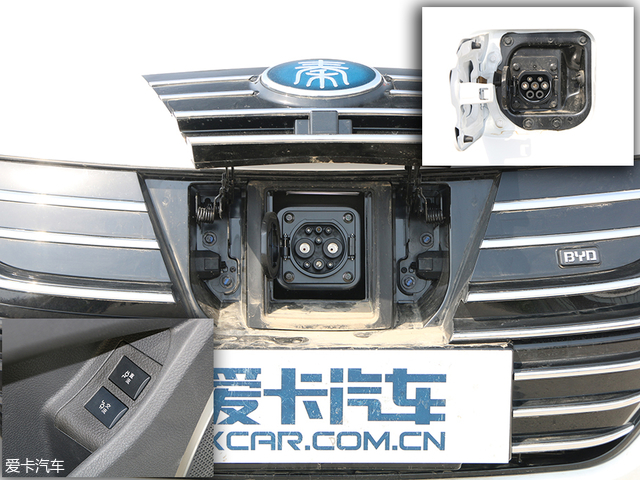 位于主駕車門上的開關按鈕,分別對應直流和交流充電口開關。