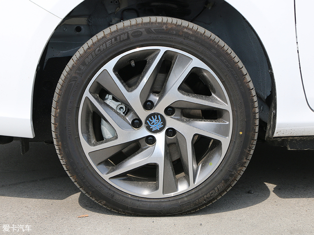 秦EV450的輪圈造型富有戰(zhàn)斗氣息,復雜的刀鋒式設計讓人百看不厭,藍色的小篆體“秦”位于中心,彰顯了家族特色。輪胎采用米其林品牌,規(guī)格為205/50 R17。