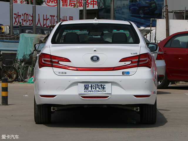 由于是純電動車,所以沒有排氣,車尾底部用三個反光條來點綴。受電池組位置變化的影響,位于秦logo處的充電口被封死。