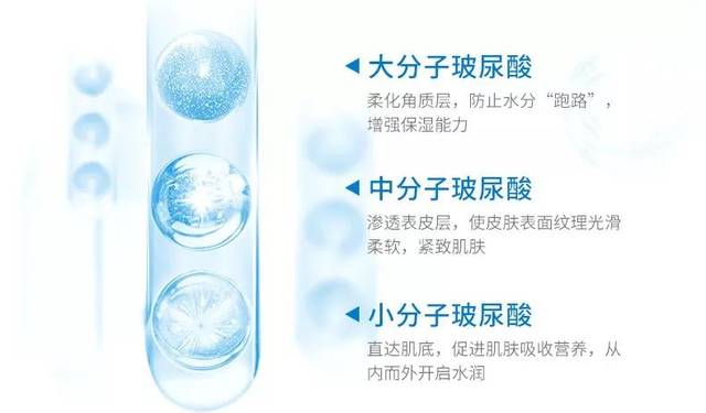 ? 最后就是重中之重的低分子玻尿酸,它的分子量?jī)H為0.3~1萬道爾頓,可以不靠肌膚毛孔利用透皮吸收滲入真皮層,深入保濕,深層護(hù)理肌膚。