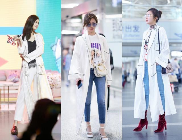 好看的衣服總是讓人搶著穿,同穿白色睡衣式長款風衣三位女星搭配出不同的風格魅力~