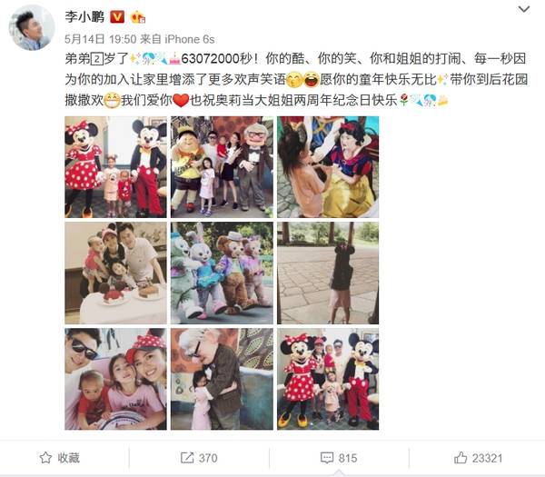 在這之前的5月是李小鵬兒子的生日,剛剛滿兩歲,一家四口最近就又去了一趟迪士尼樂園。如果是年卡用戶,那他們這個(gè)卡辦得可真劃算。