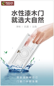 2018年年初,大自然木門全新品牌廣告搶灘登陸全國(guó)各地機(jī)場(chǎng)、高鐵、建材市場(chǎng)、高速公路等黃金廣告位,并高調(diào)宣布:大自然木門正致力推動(dòng)產(chǎn)品迭代,搶占“水性漆木門”橋頭堡,引領(lǐng)木門行業(yè)進(jìn)入“水漆時(shí)代”。