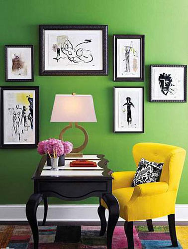 編輯點(diǎn)評(píng):如果墻面選擇了單色,不用擔(dān)心,只要后期軟裝稍作處理,一樣可以搭配出色彩繽紛的活力之居。明亮的黃色單椅搭配拼圖地毯,繽紛的色彩呼之欲出。黃色跟綠色墻體搭配更覺(jué)空間出彩。