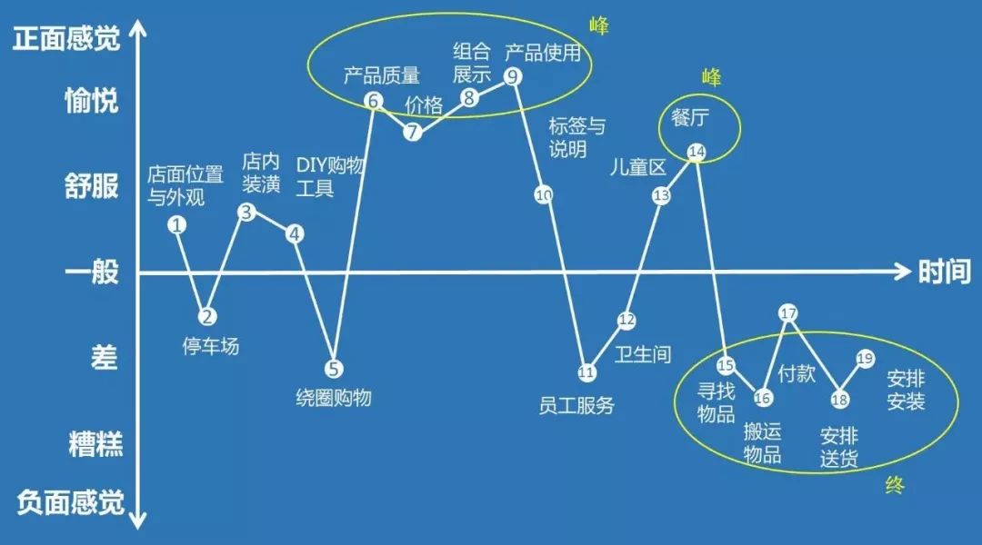 峰終定律:人們對一件事的印象,往往只能記住兩個部分,一個是過程中的最強體驗,峰;一個是最后的體驗,終。過程中好與不好的其他體驗對記憶差不多沒有影響。