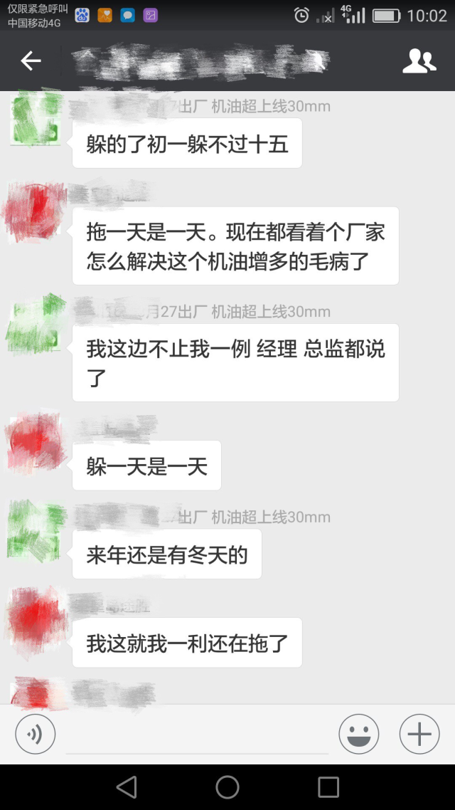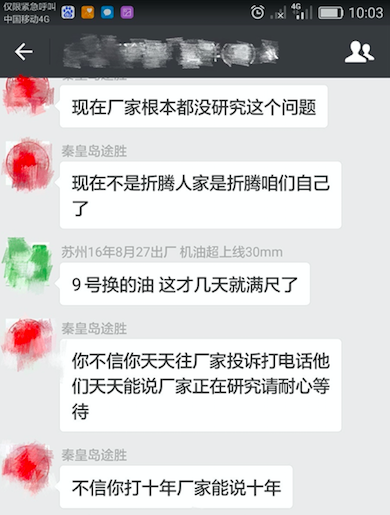 媒體是廠商和消費(fèi)者之間溝通的橋梁,我們已經(jīng)做了我們?cè)撟龅氖拢谟熊?chē)主詳細(xì)聯(lián)系方式情況下,北京現(xiàn)代是不是更應(yīng)該拿出解決問(wèn)題的誠(chéng)意來(lái)主動(dòng)聯(lián)系車(chē)主?遺憾的是,截至發(fā)稿時(shí)沒(méi)有任何車(chē)主接到聯(lián)系電話。 \u00A0 “現(xiàn)在廠家根本沒(méi)有研究這個(gè)問(wèn)題,不信你打十年廠家電話能推卸十年”、“9號(hào)換的油,這才幾天就滿(mǎn)尺了”……車(chē)主交流群里充滿(mǎn)了無(wú)奈、絕望和憤怒。 \u00A0\u00A0 部分車(chē)主對(duì)北京現(xiàn)代已經(jīng)不抱任何希望,從今往后不會(huì)再買(mǎi)北京現(xiàn)代,而還有部分途勝車(chē)主表示將維權(quán)進(jìn)行到底。