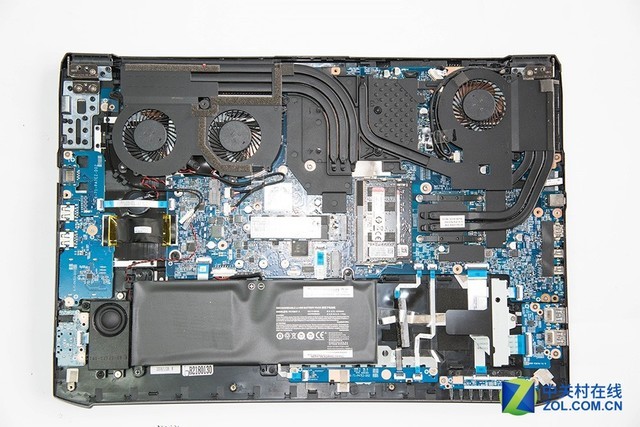 散熱部分,共使用6根熱管,3個(gè)散熱風(fēng)扇,其中CPU為主3熱管2風(fēng)扇,另一邊的風(fēng)扇和單獨(dú)一條熱管輔助對(duì)CPU散熱,兩個(gè)出風(fēng)口,這樣優(yōu)秀散熱設(shè)計(jì),可以讓高性能的CPU、GPU核心溫度不至過高、影響性能,在需要大量圖形運(yùn)算時(shí)也能維持正常工作。