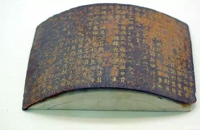 通常來說,鐵券是鐵制的,外形如筒瓦狀、覆瓦狀,鐵券上的詞句最初是用丹砂填字,稱為“丹書鐵券”,也可稱為“丹書鐵契”。到南朝梁時(shí),用銀粉填字,稱為“銀券”。隋朝時(shí)用金砂填字,稱為“金券”。而歷史上大部分時(shí)期,都是以“丹書鐵券”形制呈現(xiàn)為多,因其可以世代相傳,又被稱為“世券”。
