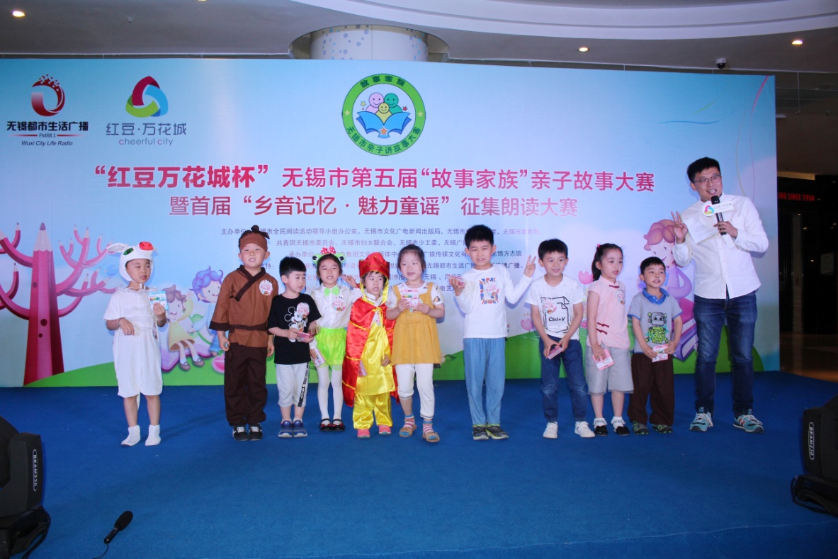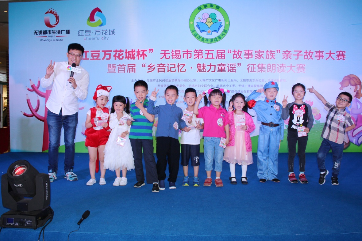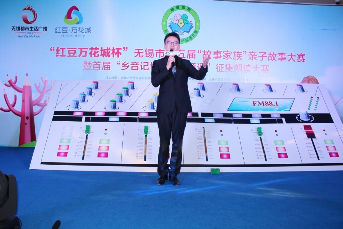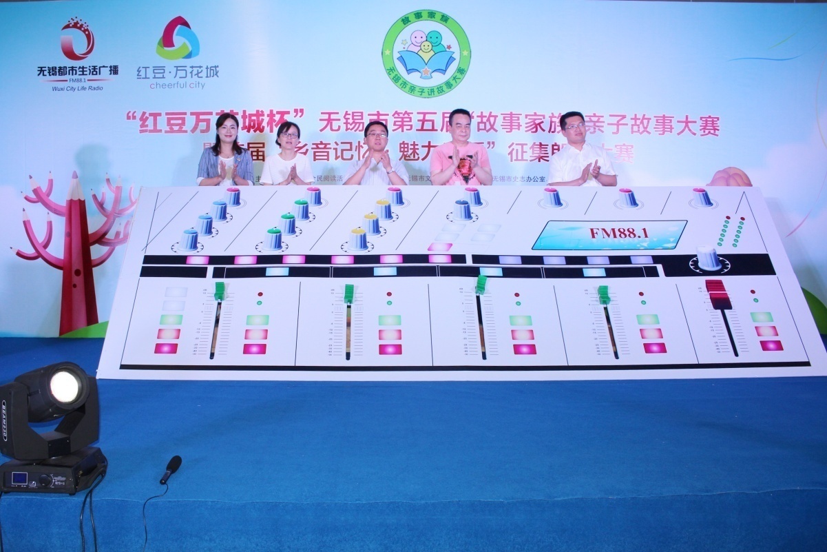 在熱烈掌聲中,市全民閱讀辦、市文廣新局副調(diào)研員汪慶和先生,市史志辦副主任、無(wú)錫方志館館長(zhǎng)顧必成先生,團(tuán)市委副書(shū)記周衛(wèi)國(guó)先生,無(wú)錫廣電集團(tuán)(臺(tái))副總裁、副臺(tái)長(zhǎng)、副總編輯、廣娛傳媒董事長(zhǎng)張軍女士,紅豆集團(tuán)商業(yè)事業(yè)部部長(zhǎng)、中山路紅豆萬(wàn)花城總經(jīng)理呂黎女士共同為本次比賽啟動(dòng),隨著“調(diào)音臺(tái)”的開(kāi)啟,“紅豆萬(wàn)花城杯”無(wú)錫市第五屆“故事家族”親子故事大賽復(fù)賽開(kāi)賽啦!