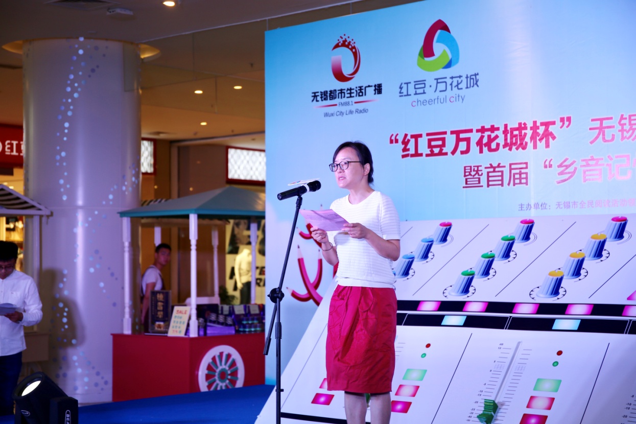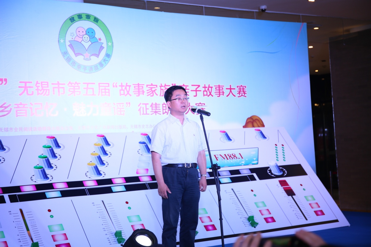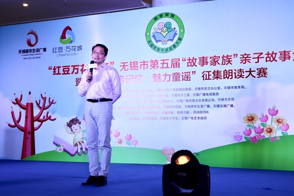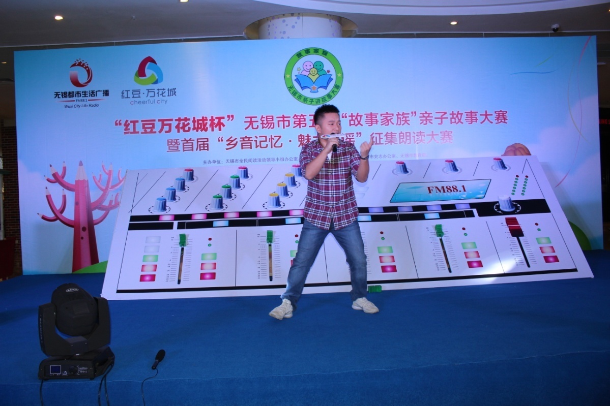 在熱烈掌聲中,市全民閱讀辦、市文廣新局副調(diào)研員汪慶和先生,市史志辦副主任、無(wú)錫方志館館長(zhǎng)顧必成先生,團(tuán)市委副書(shū)記周衛(wèi)國(guó)先生,無(wú)錫廣電集團(tuán)(臺(tái))副總裁、副臺(tái)長(zhǎng)、副總編輯、廣娛傳媒董事長(zhǎng)張軍女士,紅豆集團(tuán)商業(yè)事業(yè)部部長(zhǎng)、中山路紅豆萬(wàn)花城總經(jīng)理呂黎女士共同為本次比賽啟動(dòng),隨著“調(diào)音臺(tái)”的開(kāi)啟,“紅豆萬(wàn)花城杯”無(wú)錫市第五屆“故事家族”親子故事大賽復(fù)賽開(kāi)賽啦!