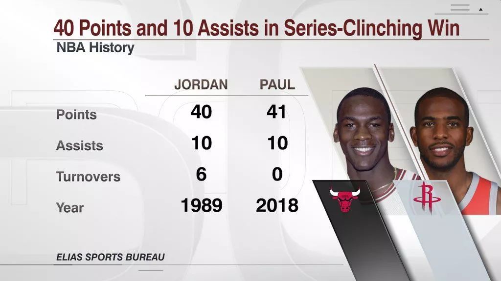 保羅最終轟下41分10助攻,不僅創(chuàng)造生涯季后賽得分新高,更成為1989年邁克爾·喬丹以來第一位在晉級戰(zhàn)中打出40分10助攻的球員。