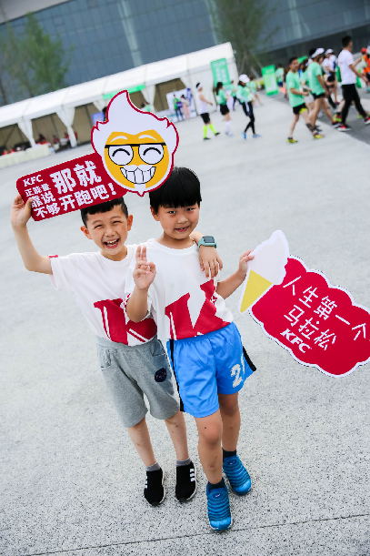如果說馬拉松賽事的肯德基主跑團(tuán)是挑戰(zhàn)自我極限的勇士,那么參與“親子跑”的跑友們更像是一場家庭的歡聚。在5.2公里的迷你馬拉松中,親子跑團(tuán)的參與,無論是大人還是小孩,都收獲了無限的快樂。