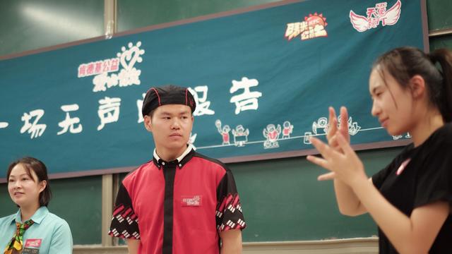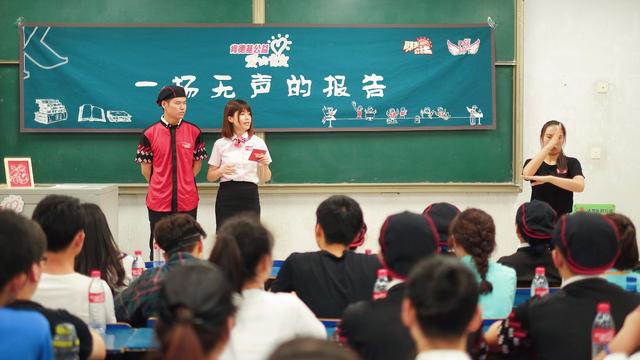 “雖然耳朵聽不見,但是我有勤奮的大腦和努力的雙手,最后想送給大家一句我很喜歡的話,你若精彩,老天自有安排……”在全國助殘日之際,5月18日,在鄭州大學的課堂上,來自鄭州肯德基二七萬達天使餐廳的天使員工鄭繼東,成了這里的主角,他用一場無聲的報告會,分享了他自己的故事(省殘聯(lián)專門支援了一位聾協(xié)專業(yè)的手語翻譯老師)。