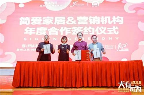 >簡愛家居&營銷機構(gòu)< 年度合作簽約 傳世嘉業(yè)?創(chuàng)夢營銷機構(gòu)?亞馬遜營銷機構(gòu) 互聯(lián)網(wǎng)技術(shù)與簡愛家博會融合