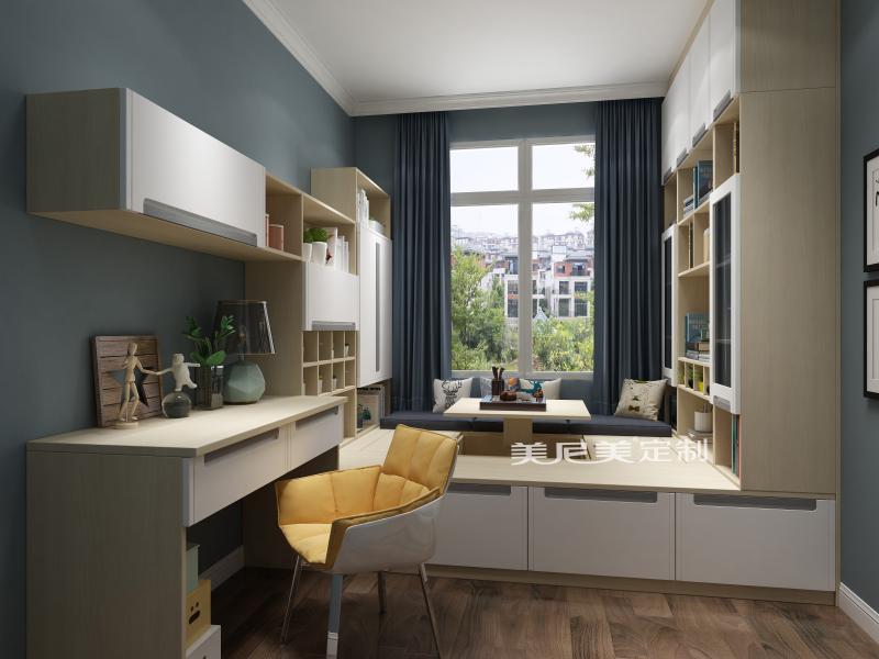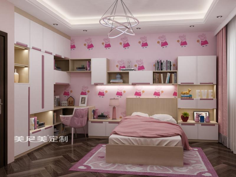 少女房里弧形的書桌讓她在看書作業(yè)的時候擁有更大的活動空間,簡潔大方的空間設(shè)計真切符合少女的夢幻天性。