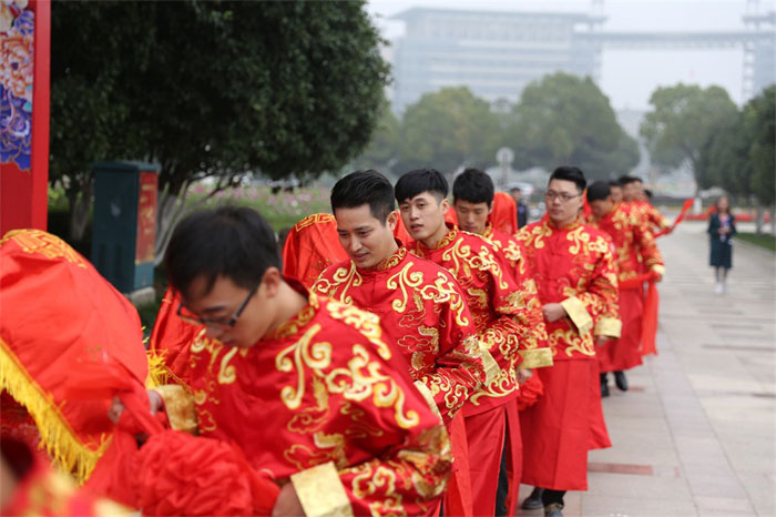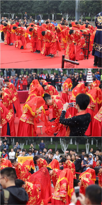 本次集體婚禮由海寧市人民政府副市長楊文華作為新人們的證婚人,致證婚詞。市民政局長倪繼紅,市文明辦主任卜娟萍,市機關事務局副局長吳建興,市廣播電視臺黨委副書記于國民出席儀式。