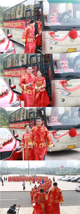 50對新人乘坐優(yōu)格集成灶婚車前往海寧市政府,進行證婚儀式!
