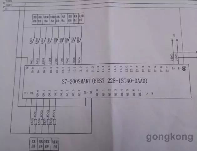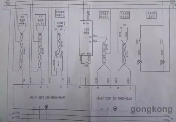 根據(jù)技術(shù)協(xié)議,采用西門子200SMART系列的PLC,系統(tǒng)控制一臺羅茨風(fēng)機,一臺沖漿泵及兩個勻漿輥共4個電機,(風(fēng)機與兩臺勻漿輥采用易能ENC600控制,沖漿泵用戶自備)另外設(shè)備開啟后必須設(shè)計運行反饋以達(dá)到用戶要求,同時必須控制流漿箱內(nèi)的液位變送器及壓力變送器,另外為方便操作增加冗余作為預(yù)留,設(shè)計圖紙如下