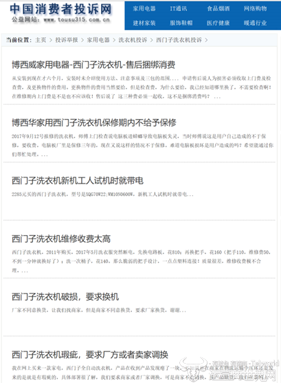 值得一提的是,近兩年西門子家電質量問題頻出,售后也備受詬病,尤其是冰箱、洗衣機、油煙機等產(chǎn)品不僅時常遭到消費者投訴,甚至屢次登上工商、質檢部門抽查“黑榜”。