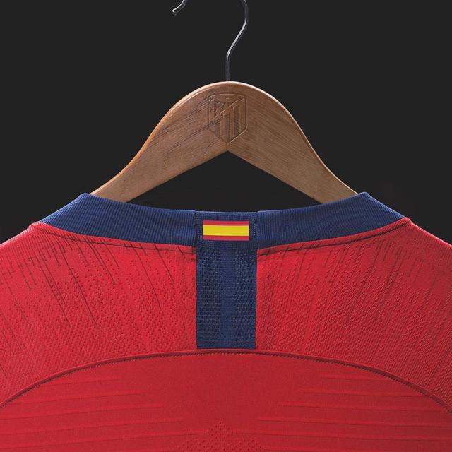 插肩式衣袖上加入動感十足的針織條紋,為整件球衣平添一分速度美感。充滿現(xiàn)代設計風格的運動V領穿著更舒適,背后衣領上加入的藍色針織透氣條帶進一步提升散熱排汗表現(xiàn),同時加入一面西班牙國旗的設計展現(xiàn)出身為首都球隊的自豪。