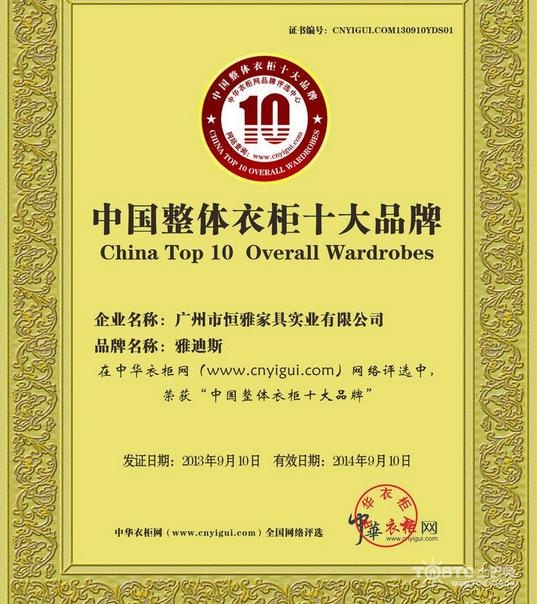 熱烈祝賀雅迪斯全房家具連續(xù)5年被評為“中國整體衣柜十大品牌”據(jù)了解本次活動(dòng)按照網(wǎng)友投票,測試數(shù)據(jù),專家評定等多項(xiàng)指標(biāo),嚴(yán)謹(jǐn)組織,嚴(yán)格評定,(根據(jù)投票結(jié)果及品牌熱評度,同時(shí)結(jié)合衣柜品牌企業(yè)規(guī)模、注冊資金、質(zhì)量認(rèn)證、專利及榮譽(yù)情況、專賣店數(shù)量等相關(guān)數(shù)據(jù)綜合評定)雅迪斯憑借其強(qiáng)大實(shí)力以及高端形象最終為廣大消費(fèi)者以及經(jīng)銷商推舉為最具有代表意義的整體衣柜十大品牌之一。