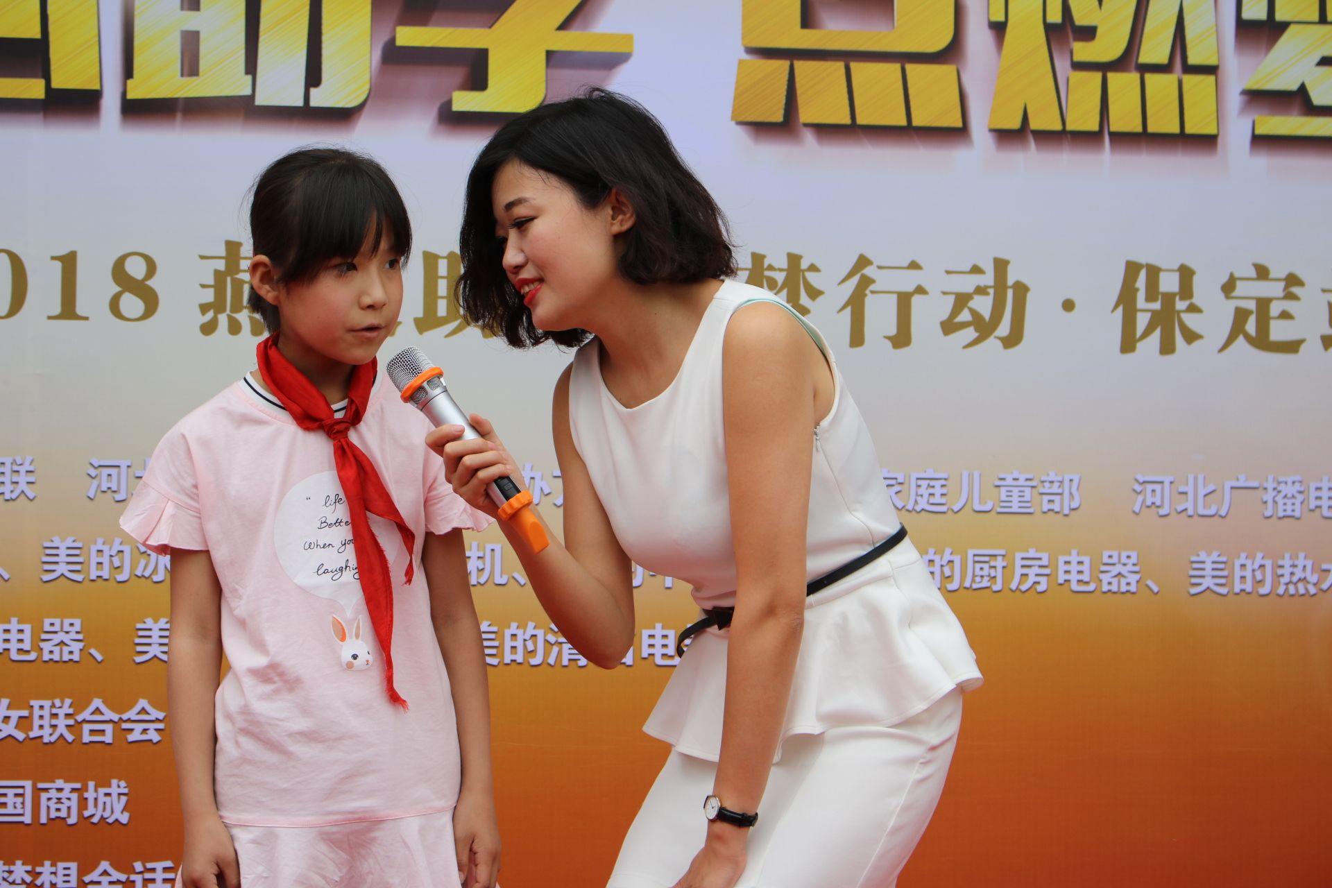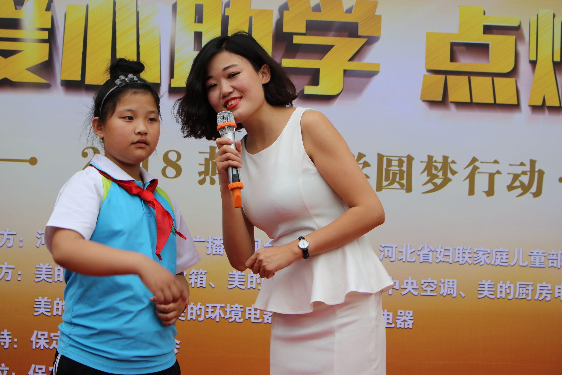 愛(ài)心成就夢(mèng)想,真情點(diǎn)燃希望。2018年5月19日,由河北省婦女聯(lián)合會(huì)、河北廣播電視臺(tái)聯(lián)合主辦、河北省婦聯(lián)家庭兒童部、河北廣播電視臺(tái)新聞綜合頻率承辦、愛(ài)心企業(yè)美的集團(tuán)河北商務(wù)中心協(xié)辦的愛(ài)心助學(xué)·點(diǎn)燃?jí)粝朊赖募瘓F(tuán)2018燕趙助學(xué)圓夢(mèng)行動(dòng)在保定北國(guó)商城站溫暖啟幕。活動(dòng)現(xiàn)場(chǎng)吸引了眾多好心人參與此次愛(ài)心公益活動(dòng),來(lái)自保定滿城金話筒的小朋友們精心準(zhǔn)備了手語(yǔ)舞和快板朗誦表演,整場(chǎng)活動(dòng)溫馨感人,愛(ài)意滿滿。