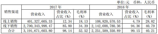 日前,貴人鳥股份有限公司(以下簡稱“貴人鳥公司”)發(fā)布2017 年年度報告,報告顯示,2017年,貴人鳥公司整體實現(xiàn)營業(yè)收入32.52億元,同比增長42.70%,實現(xiàn)歸屬上市公司股東凈利潤1.57億元,與上年同期相比減少46.25%。