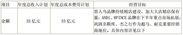 2017年度,貴人鳥公司實現(xiàn)了年度經(jīng)營計劃,營業(yè)收入達32.52億元,營業(yè)總成本30.72億元,與前期經(jīng)營計劃不存在重大差異。2018年該公司制定經(jīng)營計劃如下: