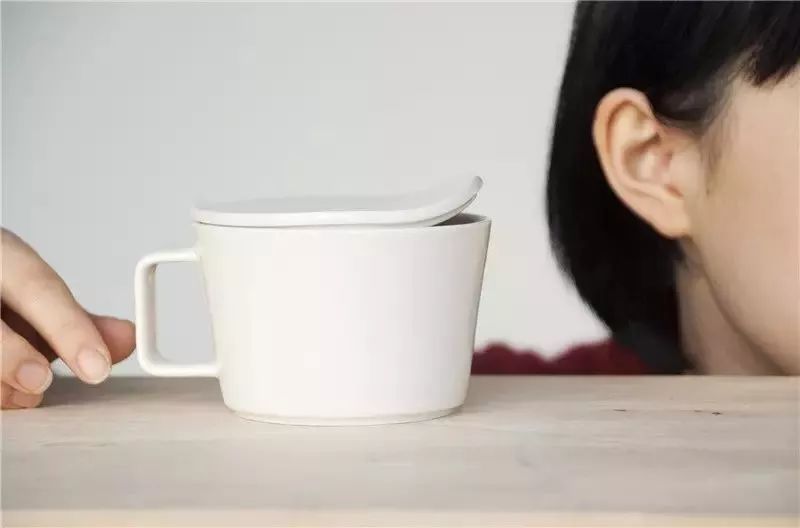 其實(shí)這個(gè)杯子,來(lái)源于王旻佳當(dāng)初的一個(gè)設(shè)計(jì)任務(wù),本意是想讓茶的香味能從翹起的口子中飄散出來(lái)。
