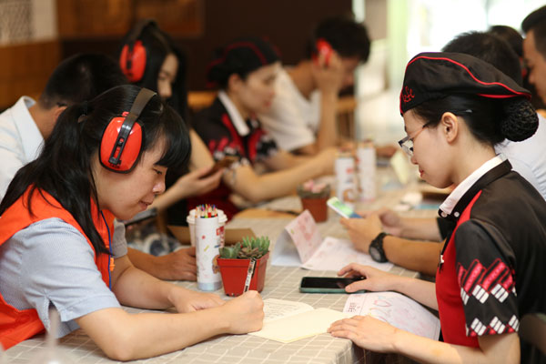 5月20日適逢第二十八次全國助殘日,廣東肯德基、廣州市殘疾人聯(lián)合會、佛山市殘疾人聯(lián)合會、CSR環(huán)球網(wǎng)、多家知名社工機構(gòu),聯(lián)合發(fā)起“靜音半小時·無聲有愛”公益行動,讓市民親身感受了無聲的世界。在5·20這個充滿愛心的日子,天使餐廳被“開啟”了靜音模式:門口一個大型的靜音符號“告訴”大家,今天上午10:30-11:00將“靜音半小時”。活動期間,餐廳關(guān)閉了背景音樂和廣播,并提供隔音耳塞給顧客與參與者,倡議保持安靜,營造一個無聲的環(huán)境,模擬“無聲天使”的世界。