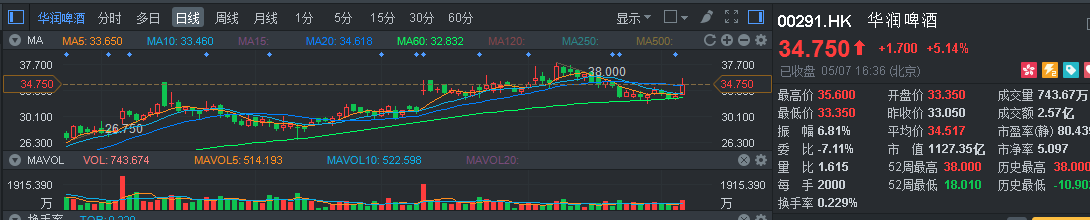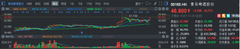 港股這邊,青島啤酒股份(00168.HK)盤中一度上漲9%,華潤啤酒(00291.HK)也有最高上漲7.7%的表現(xiàn)。