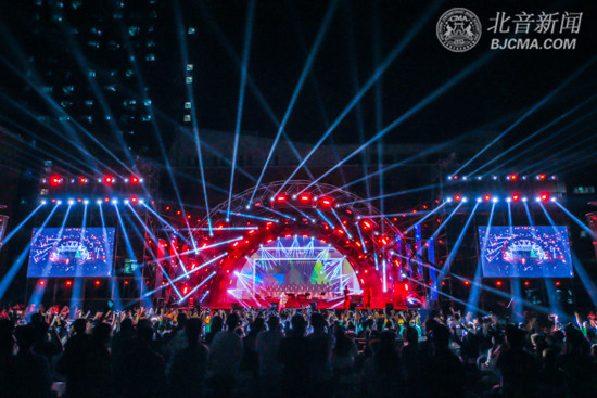 整臺晚會共21個精彩節(jié)目,涵蓋流行歌唱、現(xiàn)場樂隊、男團女團、阿卡貝拉和說唱、街舞、國標、新民樂、詩朗誦、特效化妝等多種形式,融表演、舞美、光影、視頻、服裝、特效于一體,青春、勵志、國際、時尚,好聽、好看、好玩、震撼,孕育了無數(shù)藝術人才的琴房樓、教學樓、舞蹈樓、綜合樓等在夜幕下光影閃耀,虛實交換、繽紛迷離的“樓體光影秀”,現(xiàn)場燈柱的“霧光電”效果和觀眾席隱藏的驚喜,為晚會增添了無盡的神秘色彩。