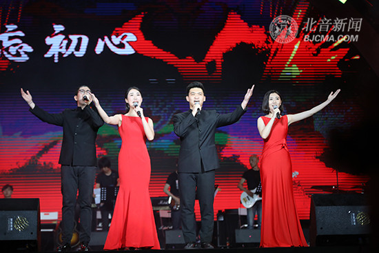 在紅橙色主題燈光中,《愛在北音》《給自己的歌》兩首清新溫暖的歌曲率先登場,隨后,“中國內(nèi)地民謠男歌手” 馬條和以范俊義為首的樂隊共同帶來搖滾風格的原創(chuàng)流行民謠歌曲《塔吉汗》,在激情四射、充滿歷史厚重感的音樂中,詮釋著北音在25年風雨里砥礪前行的勇氣和決心;配樂詩朗誦《不忘初心》講述北音走過25年,氣勢雄渾、撼人肺腑;青春勵志歌曲《追夢赤子心》中4名男生的實力演唱青春帥氣。