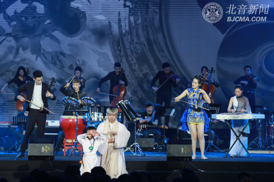 當現(xiàn)代遇上古典,當民族遇上世界,當國標遇上街舞,當年輕的我們遇上特立獨行的北音,究竟會發(fā)生怎樣奇妙的化學反應?各二級學院及附中各個核心專業(yè)身懷絕技的師生歌舞樂現(xiàn)場爭奇斗技告訴了我們答案。現(xiàn)場,中國鼓與架子鼓的鏗鏘對陣拉開斗技大戰(zhàn),三弦挑戰(zhàn)吉他,小提琴VS二胡,長笛對戰(zhàn)薩克斯,國標遭遇街舞,美聲、B-BOX、戲曲三元對抗,爭奇斗技相繼上演,臺上劍拔弩張、當仁不讓,氣氛緊張,臺下掌聲雷動、喝彩不斷,群情高漲,整個晚會氣氛達到最高潮。