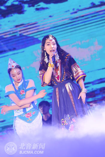 著名音樂制作人簡弘亦擔任演唱嘉賓,北音流行演唱學院學生進行情景表演,用象征著庇護北音學子不畏前路、勇敢追夢的節(jié)目《樹》向北音致敬,歌曲《云南》則將接地氣的云南民舞及唱腔與管樂轉(zhuǎn)funk風格完美融合。新民樂《太極琴俠》 中,二胡、古箏與大提琴等完美結合,體現(xiàn)了民族與流行的融合,傳統(tǒng)與時尚的交匯。情景劇《狼》,一匹紅狼屹立于一群褐色狼中間,群狼伴著夜色,盡力嘶吼,與北音LOGO中“狼”圖案相呼應,詮釋出凝聚力強、團結協(xié)作、不畏困難、砥礪前行、勇攀高峰的北音 “紅狼精神”。