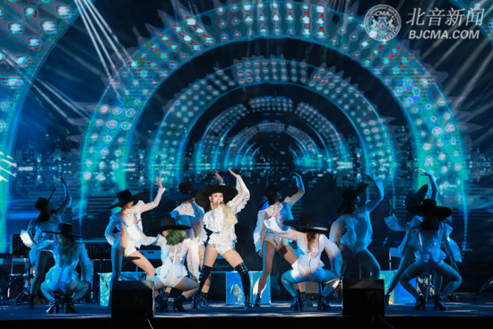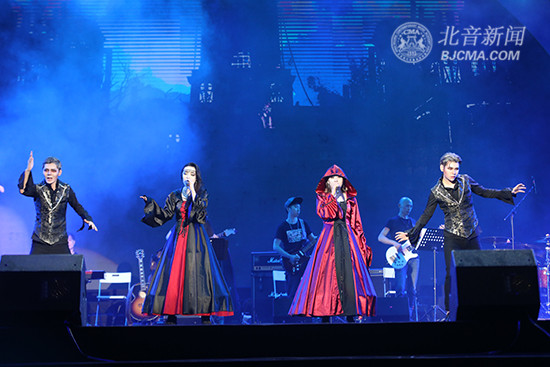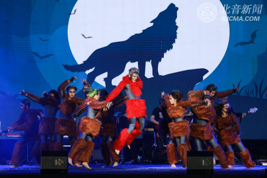由趙維童、楊子豪等12名組成的男團B.O組合和由鄭伊麗、王夢娜等9名女團組成的YA組合,無疑是全程最亮眼的“鮮肉鮮花”們,唱跳俱佳的他們活力四射的表演了三首歌曲,引得現(xiàn)場的迷弟迷妹們歡呼雀躍,舞臺上下共同搖擺,好似一場音樂派對。黑夜精靈、紅眼吸血鬼、白臉小紅帽等紛紛登上舞臺,用空靈的嗓音演唱著歌曲《Fly》,他們將特效化妝和流行音樂演唱創(chuàng)意結合,將現(xiàn)代與歐美中古高配嫁接,展示了北音各專業(yè)文化相互交融,相互創(chuàng)新的藝術成果。歌曲《致敬Beyonce》由張文慧子和流行演唱學院學生共同表演,勁歌熱舞,將青春陽光、積極向上精神展現(xiàn)的淋漓盡致。福音歌《no fear in my heart》,由張超男領唱,一院學生共同合唱,溫暖和諧的畫面,十分感人。