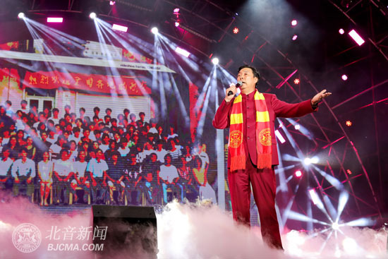 除了師生獻藝、嘉賓助陣之外,北京現(xiàn)代音樂研修學院創(chuàng)始人李罡,也在萬眾期待中登上舞臺,用一首《掌聲響起來》與大家共同祝福北音。“孤獨站在這舞臺,聽到掌聲響起來,我的心中有無限感慨,多少青春不在,多少情懷已更改,我還擁有你的愛……”隨著院長歌聲響起,全場觀眾在高喊“罡爸”的同時,拿起手機為“罡爸”打call,現(xiàn)場星光閃耀,在“罡爸”唱出“我愿用一生,換回你們的愛”時,現(xiàn)場掌聲經(jīng)久不息,“罡爸,我愛你”“北音,我愛你”的呼聲此起彼伏。