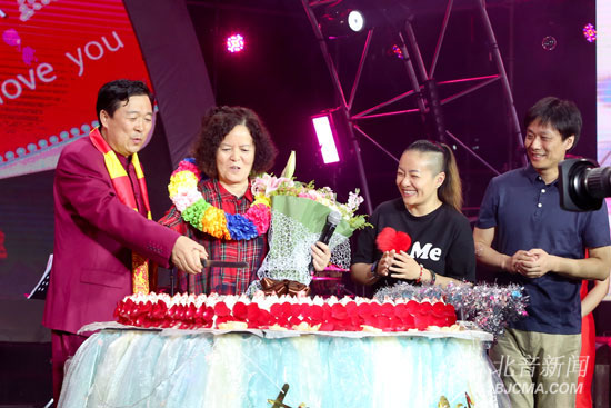 令人驚喜的是,北音25周歲正是衣江風老師60歲的生日,李罡院長攜全體師生,共同為在北音辛勤工作了22年之久的衣老師送上了誠摯的祝福,場面溫馨感人。在全場“生日快樂”的祝福歌聲中,李罡院長和衣江風老師攜手各院系領導一起切開了“北音25周歲”巨型生日蛋糕,向北音25周歲送上祝福,同時也表達著像衣江風老師一樣扎根北音辛勤耕耘的北音人,他們與北音同甘苦、共榮辱,齊奮進,像一個大家庭一樣團結一心,在以李罡院長為首的領導下,共創(chuàng)北音輝煌的美好愿景。