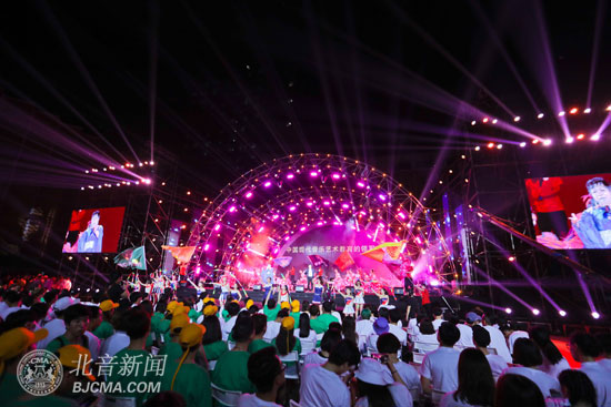 冷煙火和燈柱光影交錯,動感單車表演朝氣蓬勃,臺下觀眾積極互動;“我是北音2017級學生”、“我愛你—北音”、“永遠愛你—我的大北音”、“北音,我愛你”、“I love you—北音”,VCR中一段段激動人心的表白語回蕩在現(xiàn)場,一張張熱情洋溢的笑臉出現(xiàn)在大屏幕上……北音的莘莘學子不忘初心,積極向上,迎著旭日東升,充滿勵志活力的主題和“追根溯源,不忘初心,大美北音,我愛北音”的情懷在這一篇章中得到了很好的詮釋。