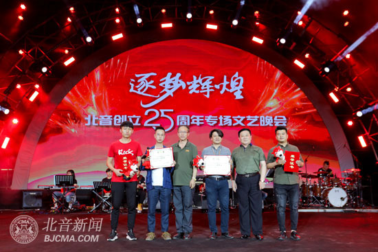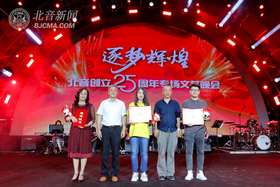 在晚會臨近尾聲時,主持人公布了 “我愛北音”校園歌曲征集活動的獲獎名單,李罡院長等院領導為獲獎人員頒發(fā)了獲獎證書。