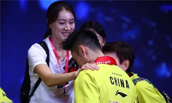 而賽后林丹愛妻謝杏芳則主動為老公整理衣領(lǐng),個中甜蜜盡在其中,領(lǐng)獎前還站在后面為林丹按摩,沒看決賽的球迷還以為林丹打得多激烈呢!可以說林丹自己未上場,“小兒輩就已大破賊”,再加上還有愛妻心疼自己不離不棄提供“按摩”服務(wù),林丹成為本屆賽事最大贏家,李宗偉看完后估計得哭暈在廁所中。